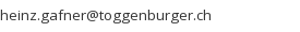 • Toggenburger + Co. AG, Motorenstrasse 59, 8620 Wetzikon (CH), Tel: +41 44 930 42 09, Fax: +41 44 930 42 49, heinz.gafner@toggenburger.ch
