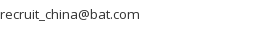 • British American Tobacco China, 19th Floor, Tower B,, Pacific Century Place, No. 2A, Gong Ti Bei Lu, Chaoyang District, Beijing 100027 (CN), Tel: (+86) 10 6539 1388, Fax: (+86) 10 6539 3700, recruit_china@bat.com