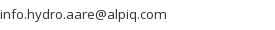 • Alpiq Hydro Aare AG, Aarburgerstrasse 264, 4618 Boningen (CH), Tel: +41 62 787 69 11, Fax: +41 62 787 69 65, info.hydro.aare@alpiq.com, www.alpiq.com