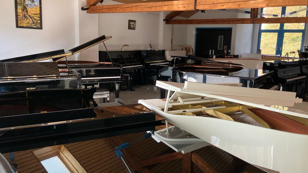 L’entreprise offre une magnifique exposition de pianos à queue et piano droits sur 2 étages, de percussions et d’instruments à vent, ainsi qu'un superbe Guitar Shop avec un atelier de réparation de guitare entièrement consacré et spécialisé à la guitare et au travaux de lutherie.