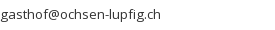 • Gasthof und Metzgerei zum Ochsen, Dorfstrasse 32, CH-5242 Lupfig (CH), Tel: +41 (0) 56 464 63 63, Fax: +41 (0) 56 464 63 97, gasthof@ochsen-lupfig.ch