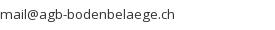 • AGB Bodenbeläge, Webereiweg 10, CH.4802 Strengelbach (CH), Tel: 062 746 02 20, Fax: 062 746 02 29, mail@agb-bodenbelaege.ch, www.agb-bodenbelaege.ch