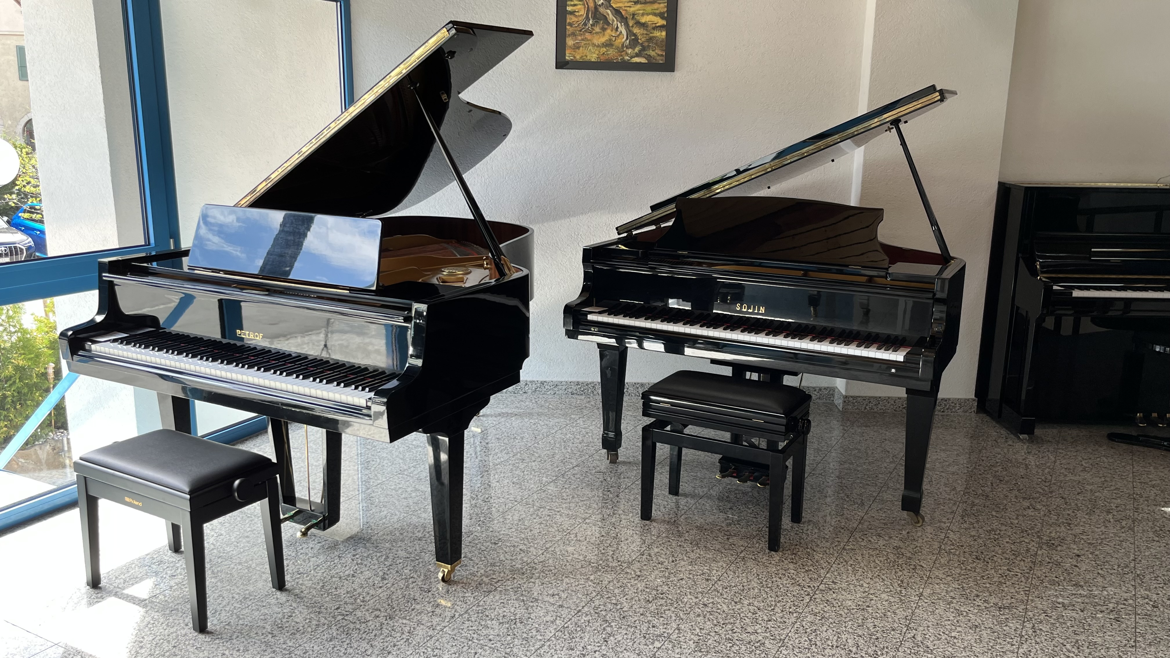 L’entreprise offre une magnifique exposition de pianos à queue et piano droits sur 2 étages, de percussions et d’instruments à vent, ainsi qu'un superbe Guitar Shop avec un atelier de réparation de guitare entièrement consacré et spécialisé à la guitare et au travaux de lutherie.