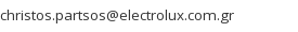 • ELECTROLUX HELLAS S.A. - PROFESSIONAL, 2, Ag. Gerasimou & 1, Trion Ierarhon Strs., Alimos, 174 55 - Athens - Greece (gr), Tel: +30 210 98 59 019, Fax: +30 210 98 54 884, christos.partsos@electrolux.com.gr